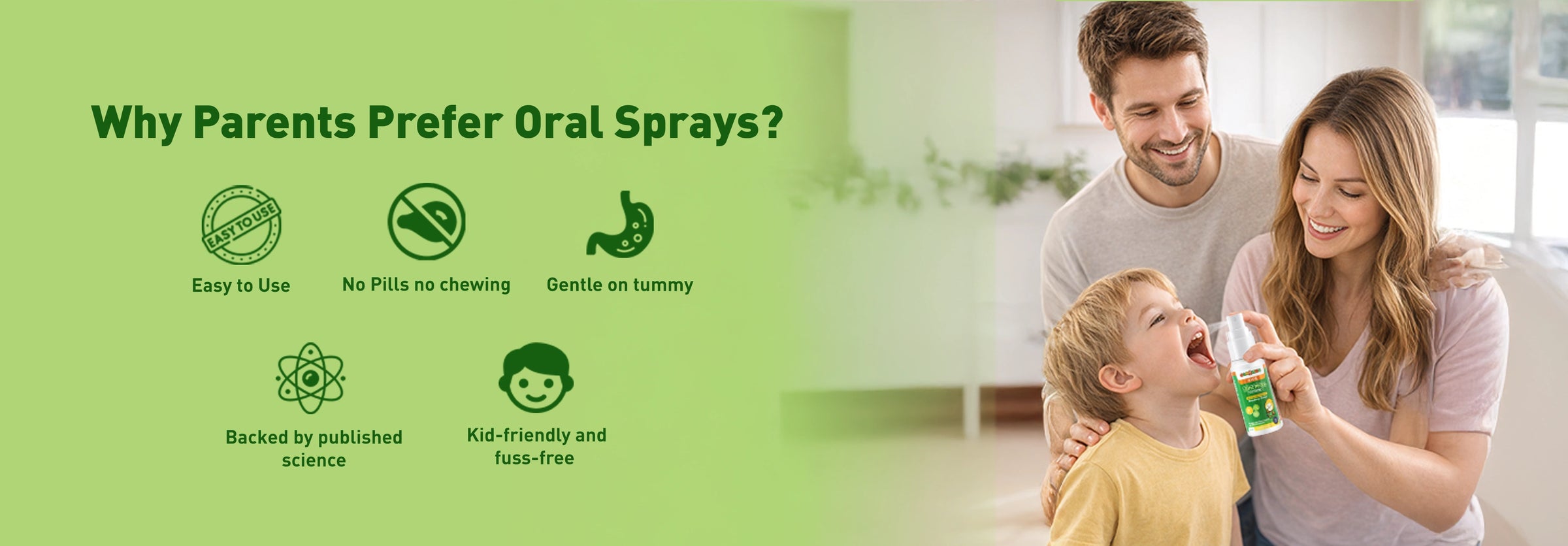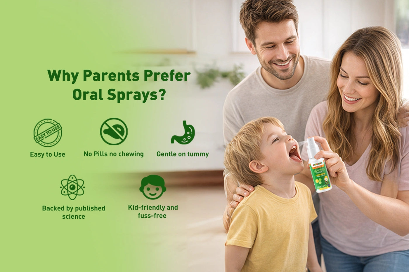Simple Daily Routine: Quick oral spray that blends smoothly into a child’s day without fuss.